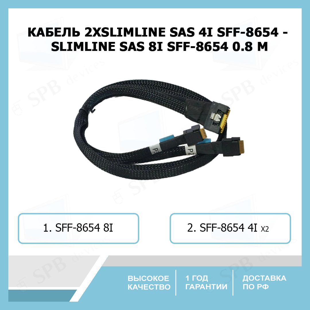 Кабель 2x SLIMLINE SAS 4i SFF-8654 - SLIMLINE SAS 8i SFF-8654 1.0 м
